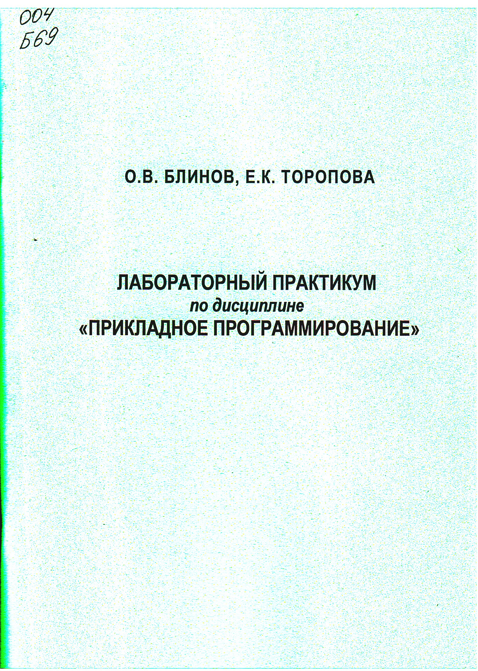 Блинов О. В. Лабораторный практикум по дисциплине «Прикладное программирование» Часть 2. Программная реализация законов регулирования, обработка сигналов / О. В. Блинов, Е. К. Торопова. - Иваново, 2025. - 116 с.