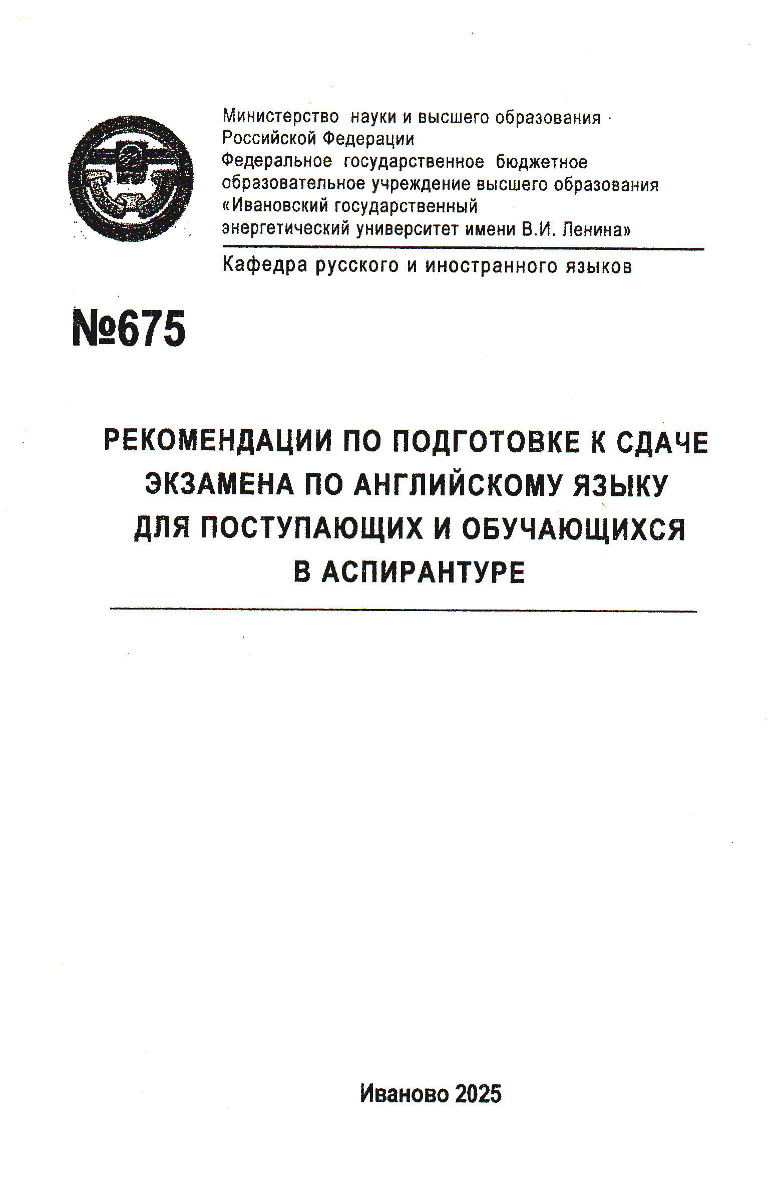 Филатова М. В. Рекомендации по подготовке к сдаче экзамена по английскому языку для поступающих и обучающихся в аспирантуре / М. В Филатова, А. Ю. Григорян. - Иваново, 2025. - 16 с.