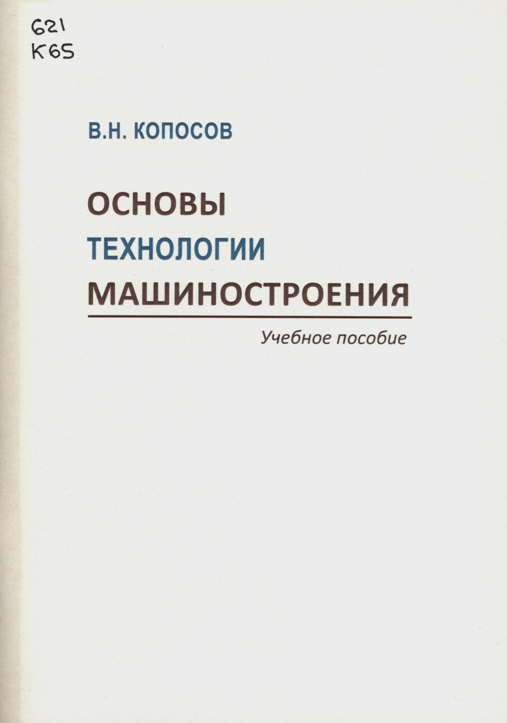 Копосов, В. Н. Основы технологии машиностроения / В. Н. Копосов. - Иваново, 2025. - 80 с.
